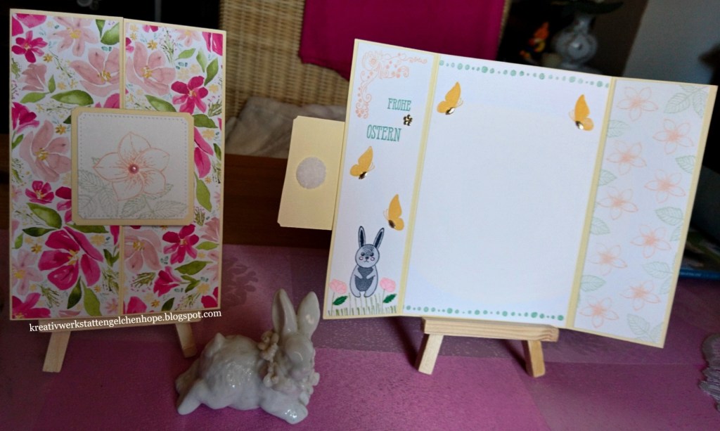 Daraus entstand dann diese Gatefold Karten für Ostern, die ich dann im Auftrag von meiner Tante gebastelt habe. Sie hat sich sehr darüber gefreut und fand die Farben passen gut in den Frühling.