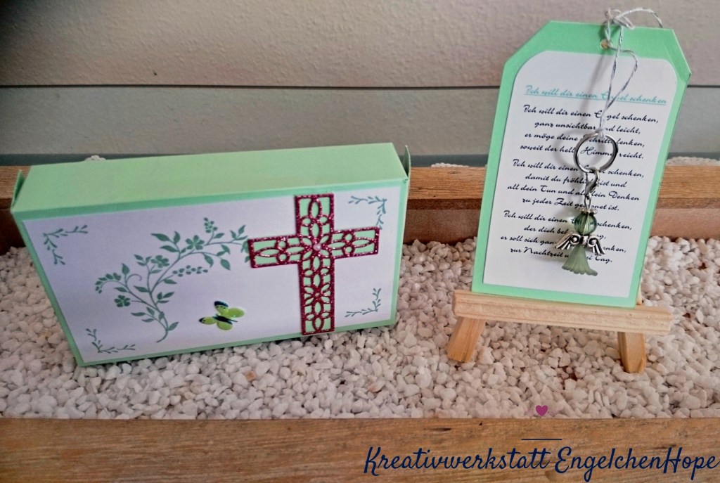 Die Damen bekamen einen Perlenschutzengel in Mintgrün und Rosa, deswegen auch die Verpackung in diesen Farben.