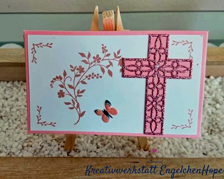 Farbkarton: Flüsterweiß, Glitzerpapier Rosa