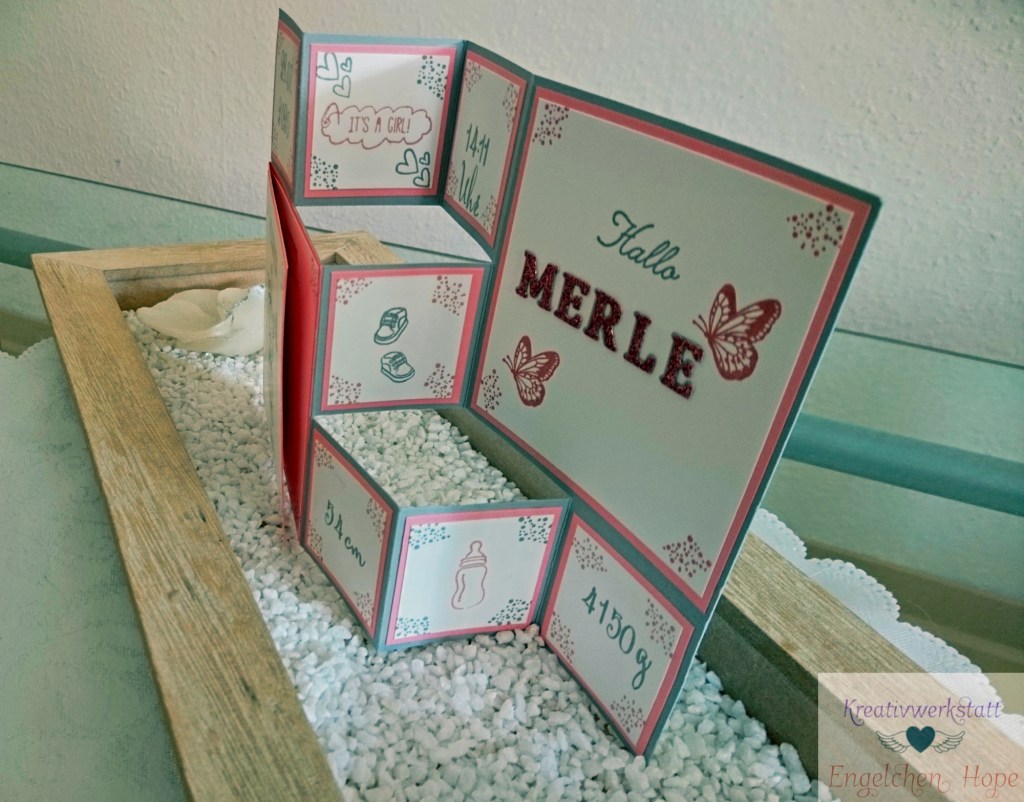 Ich hatte vor ein paar Monaten schon mal so eine Triple Z-Fold Karte gebastelt und weil die beschenkte sie so großartig fand, hat sie mir den Auftrag gegeben für noch so eine Karte zu basteln. Diese Karte sollte auch wieder zur Geburt einer kleinen süßen Maus verschenkt werden, der Bitte kam ich natürlich nach und so ist sie von meinem Basteltisch gehüpft. Es sind mal wieder einige Produkte aus meinem Altbestand vor meiner Zeit als Stampin´Up! Demo dabei.