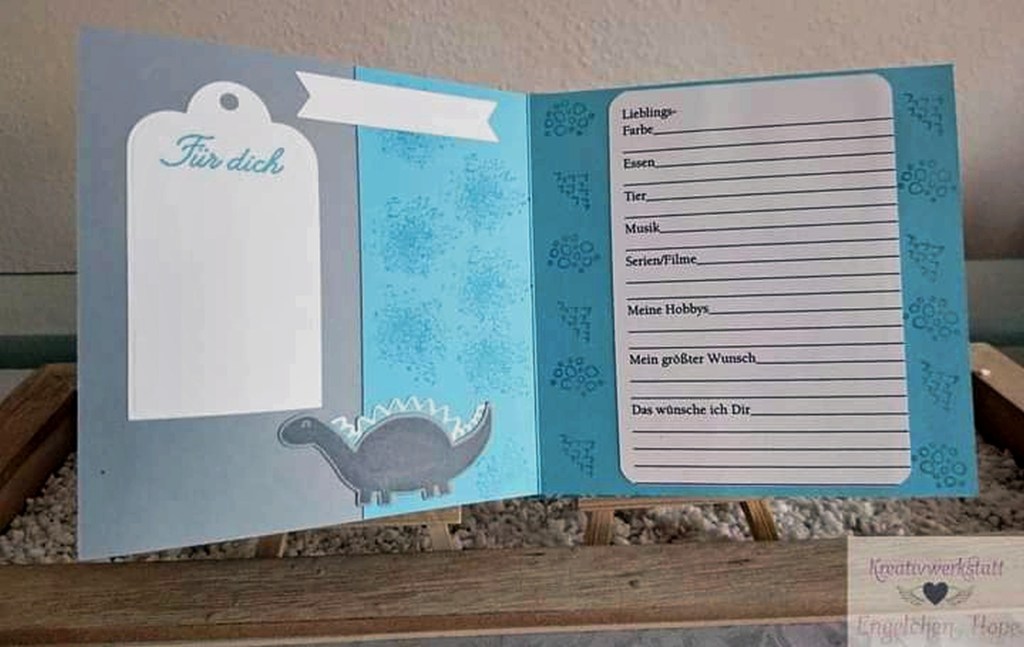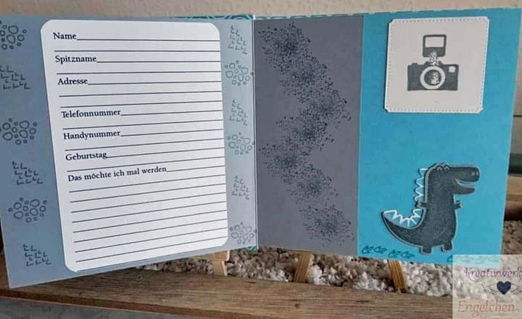 Der junge Mann mag gerne Dinos und da Stampin`Up! zufällig die Dinos noch im Sortiment hat, hatte ich sofort zugegriffen und mir das Stempelset und die passenden Stanzformen bestellt.