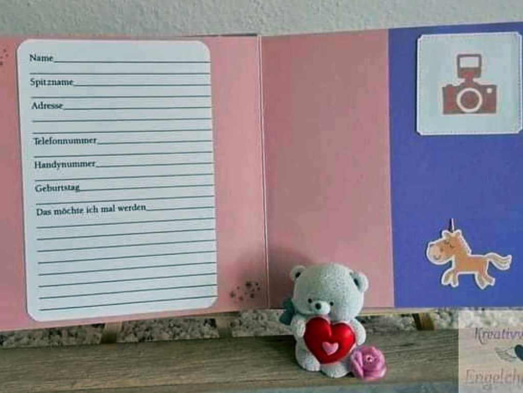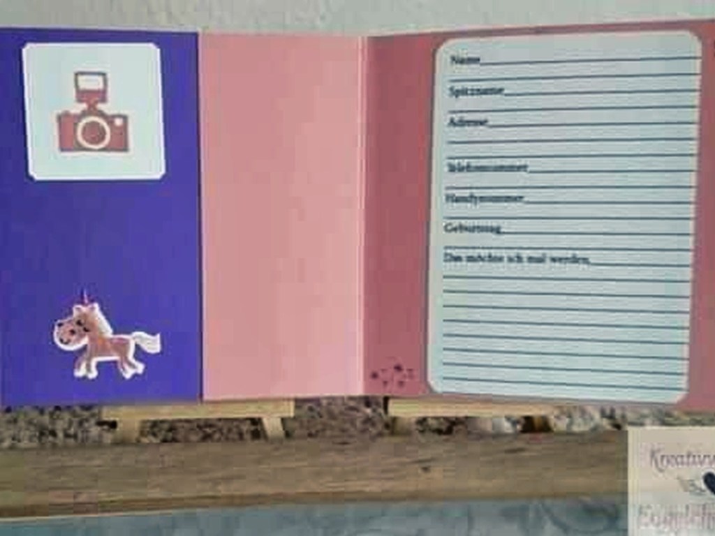 Meine Nichte hatte ich mich vor ein paar Monaten gefragt, ob ich ihr ein Freunde Buch basteln könnte, weil ihr altes Freunde Buch kaputt gegangen ist und Sie wollte das da ein Einhorn drinnen ist.