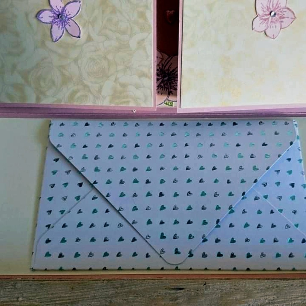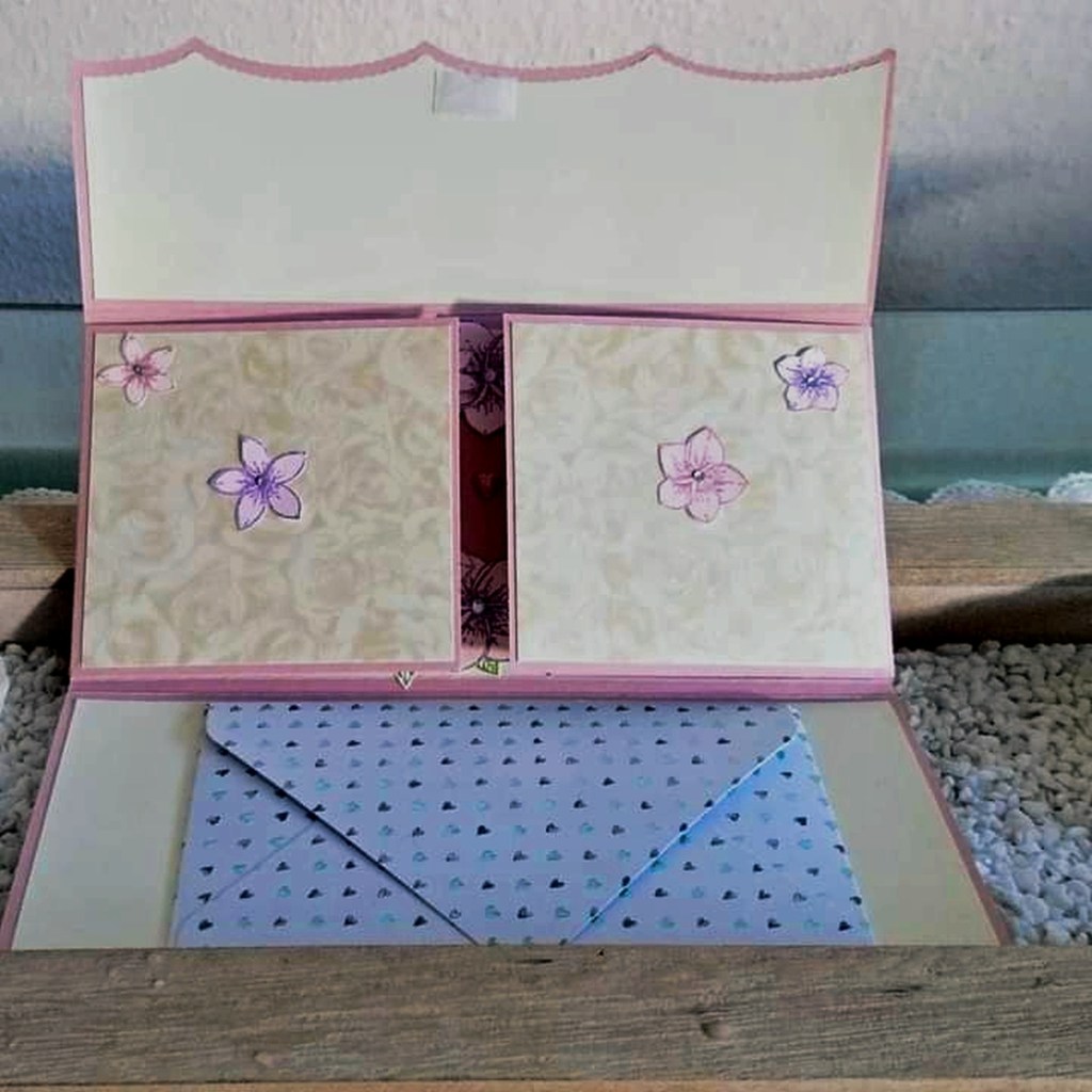 Es sollte auch noch ein selbstgeschriebener Brief in diese Karte passen, da fiel mir die Karte ein die ich vor ein paar Monaten schon mal gewerkelt hatte und so ist diese Karte von meinem Basteltisch gehüpft.