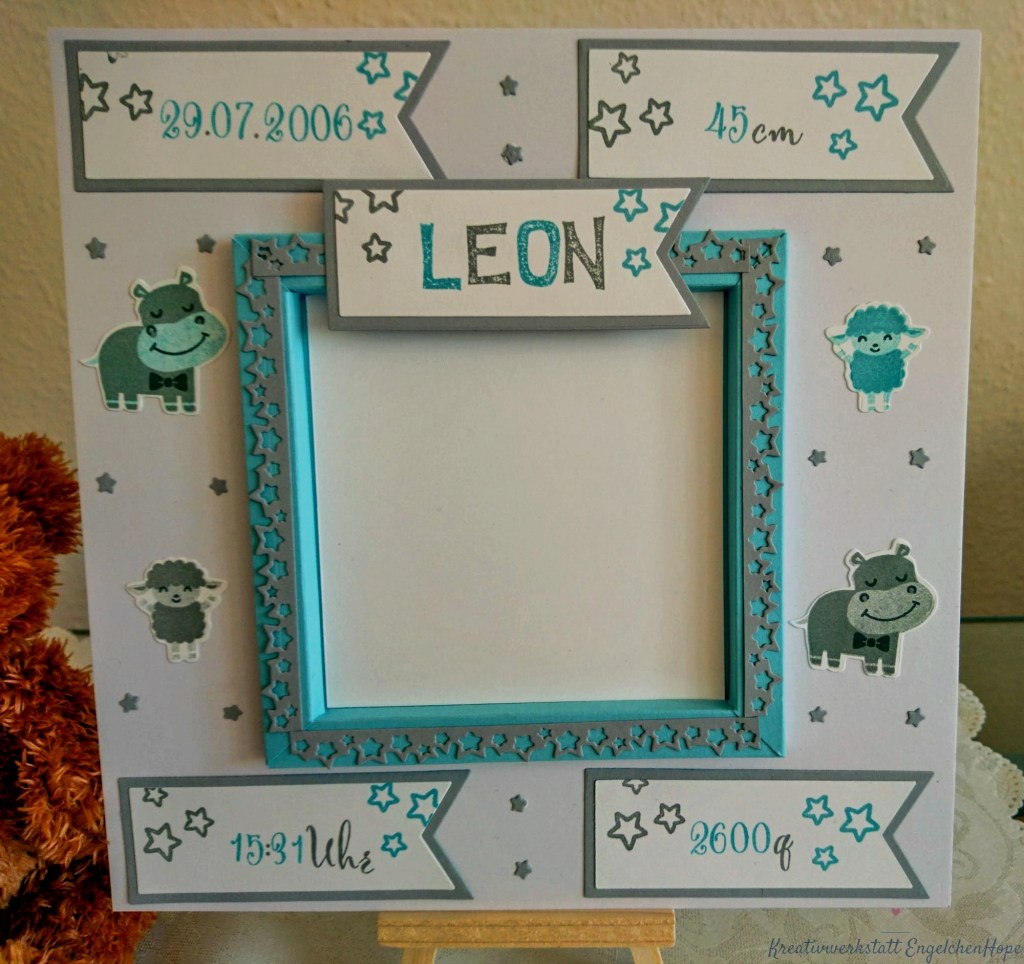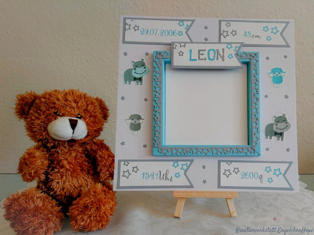 Damit er sich in seinem neuem zuhause wohl fühlt, habe ich Ihm einen Bilderrahmen mit seinen Geburtsdaten gewerkelt.