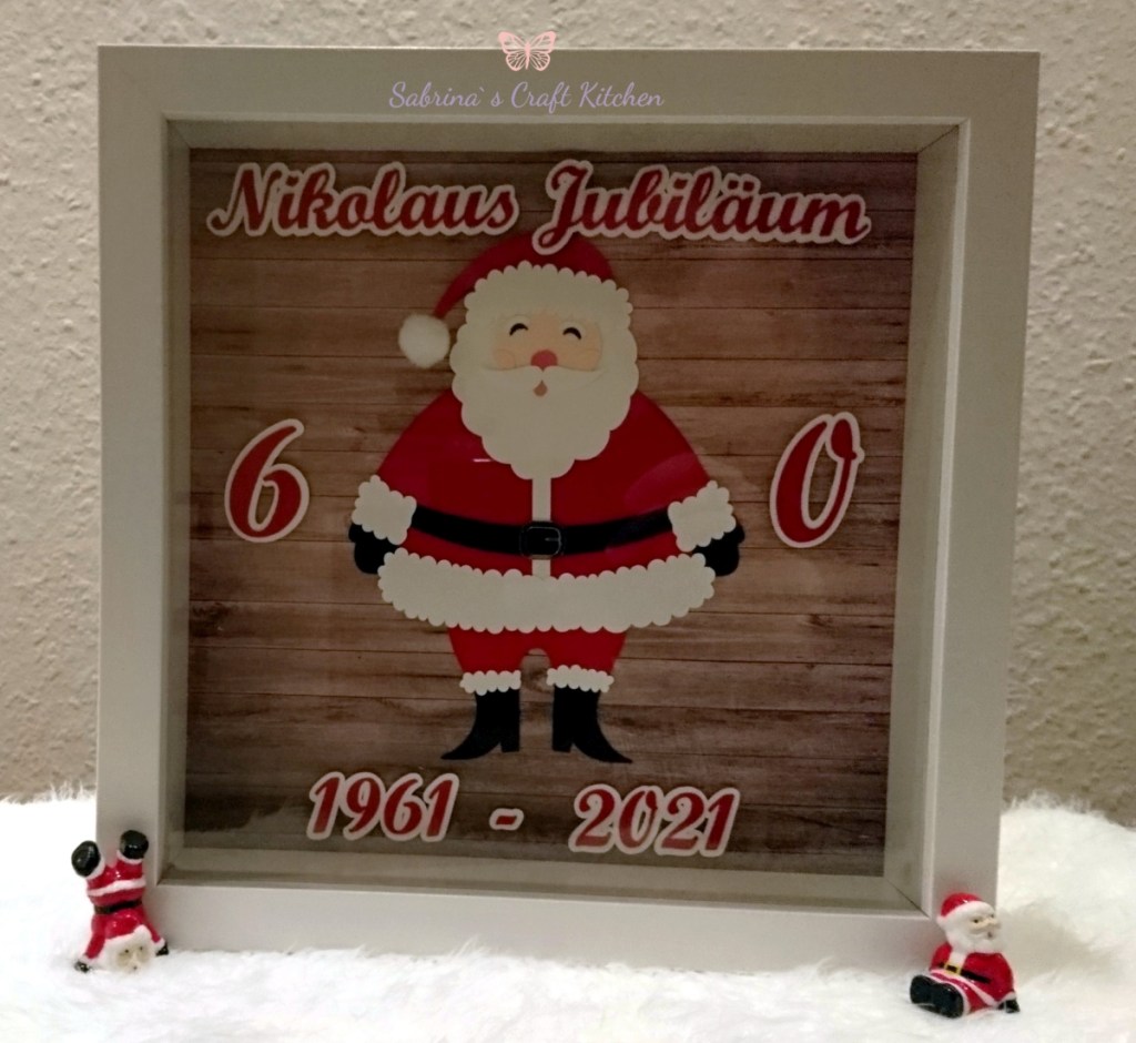 Ihr Vater hat bei uns im Dorf immer den Nikolaus gespielt und weil heute sein 60. Jubiläum zum Nikolaus ist, hat Sie mich gefragt, ob ich Ihr einen Bilderrahmen mit einem Nikolaus machen kann.