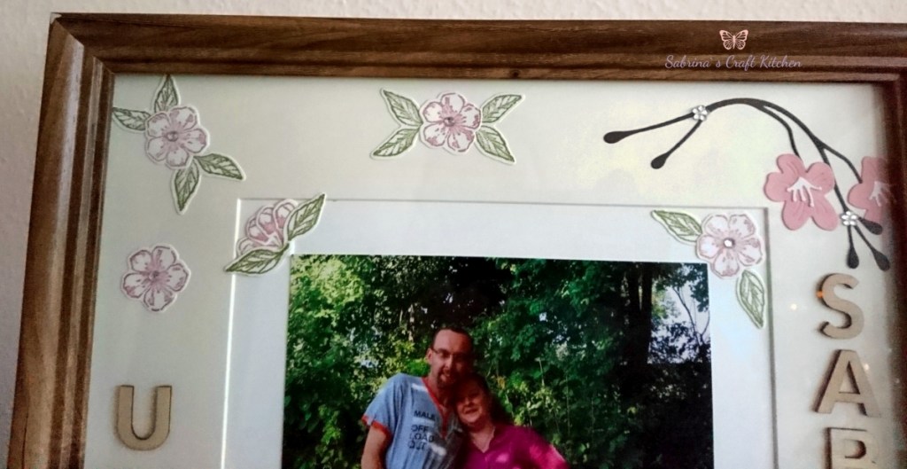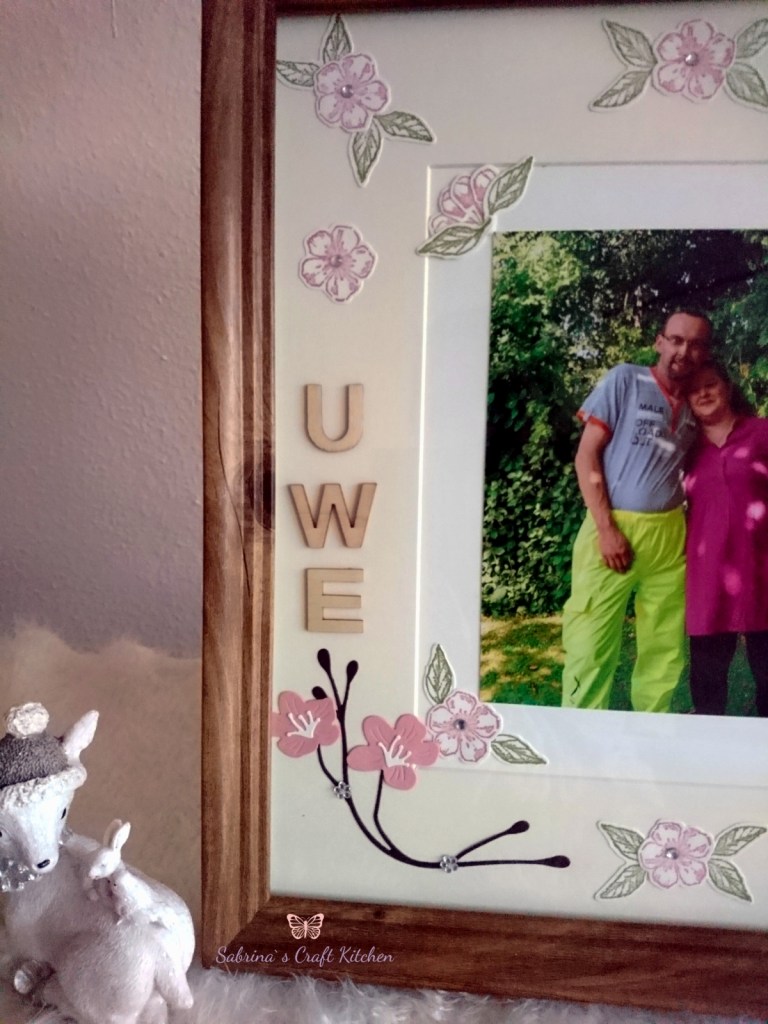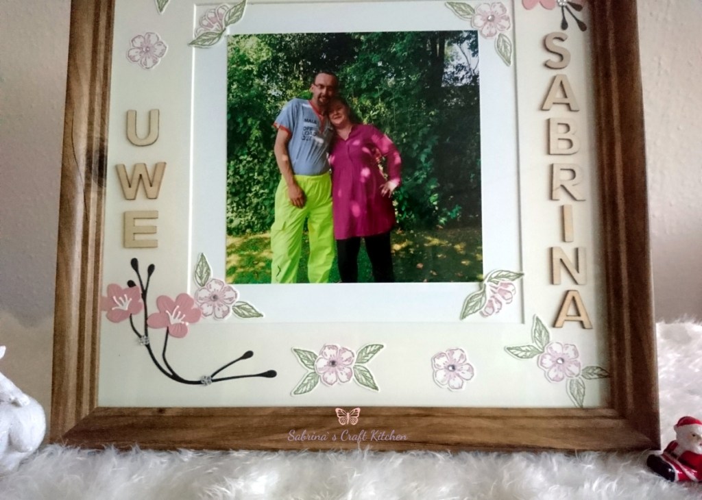 Da ich noch einen großen Bilderrahmen, Holzbuchstaben und ein Foto von uns hatte, habe ich mich am 1. Weihnachtstag an den Basteltisch gesetzt und die Idee in die Tat umgesetzt, solange er noch auf Arbeit war.