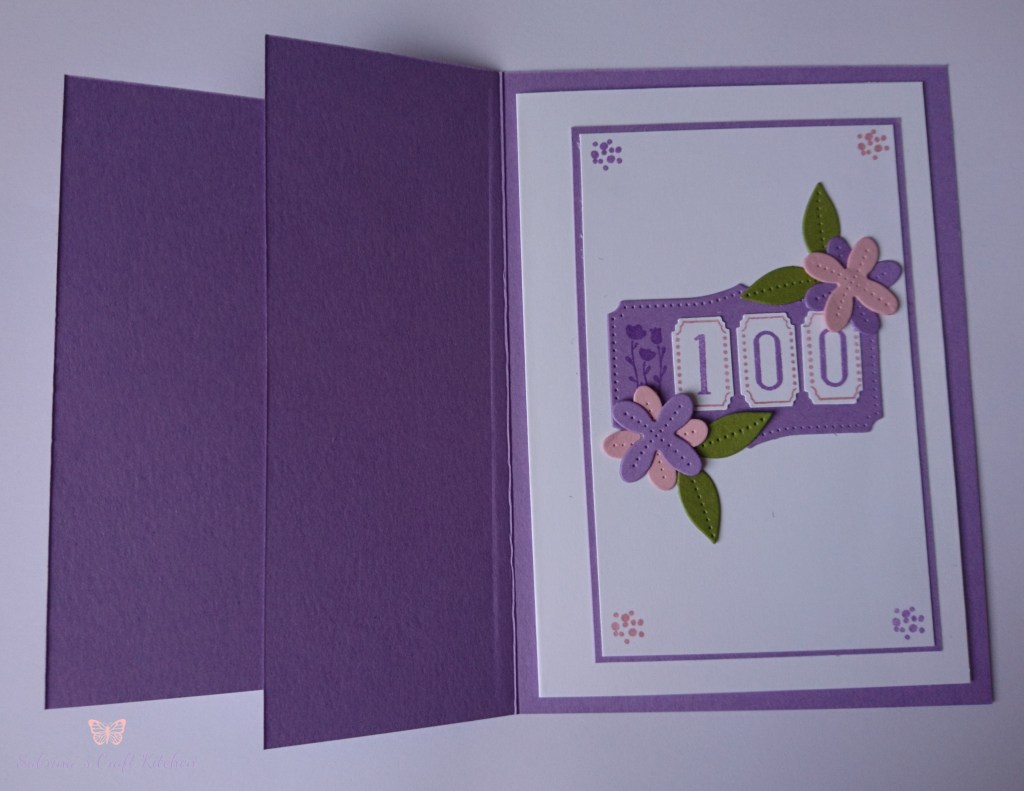 Die Zahl 100 und die Umrandung habe mit dem Stempelset Alphabest auf Grundweiß gestempelt und der passenden Handstanze ausgestanzt.