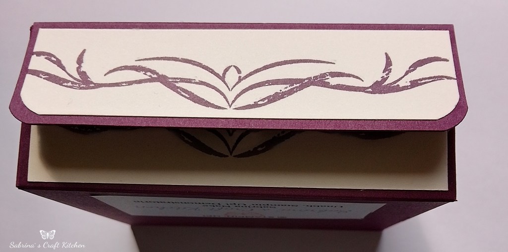 Aus Farbkarton Vanille Pur habe ich das Etikett was auf der Geschenkbox und der kleinen Grußkarte ist, ist aus einer Plotter Datei ausgeschnitten worden.