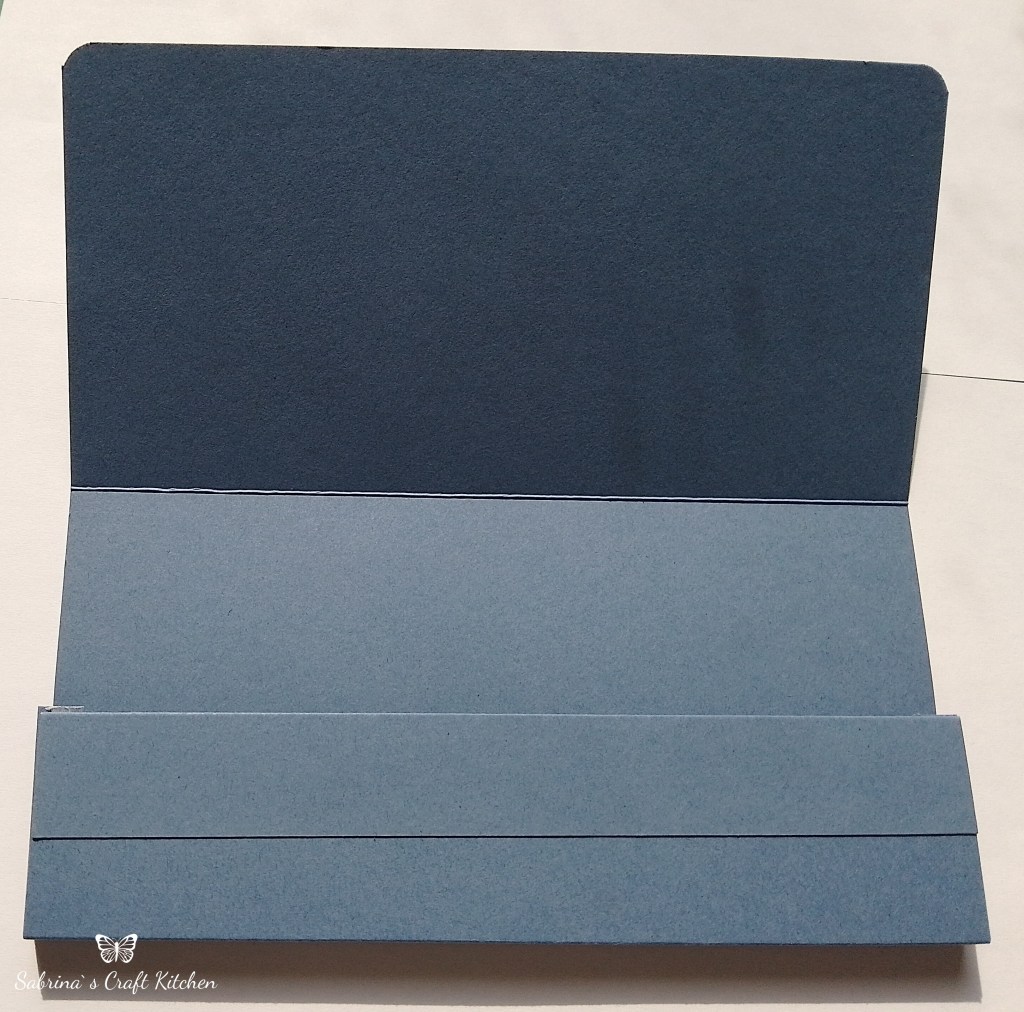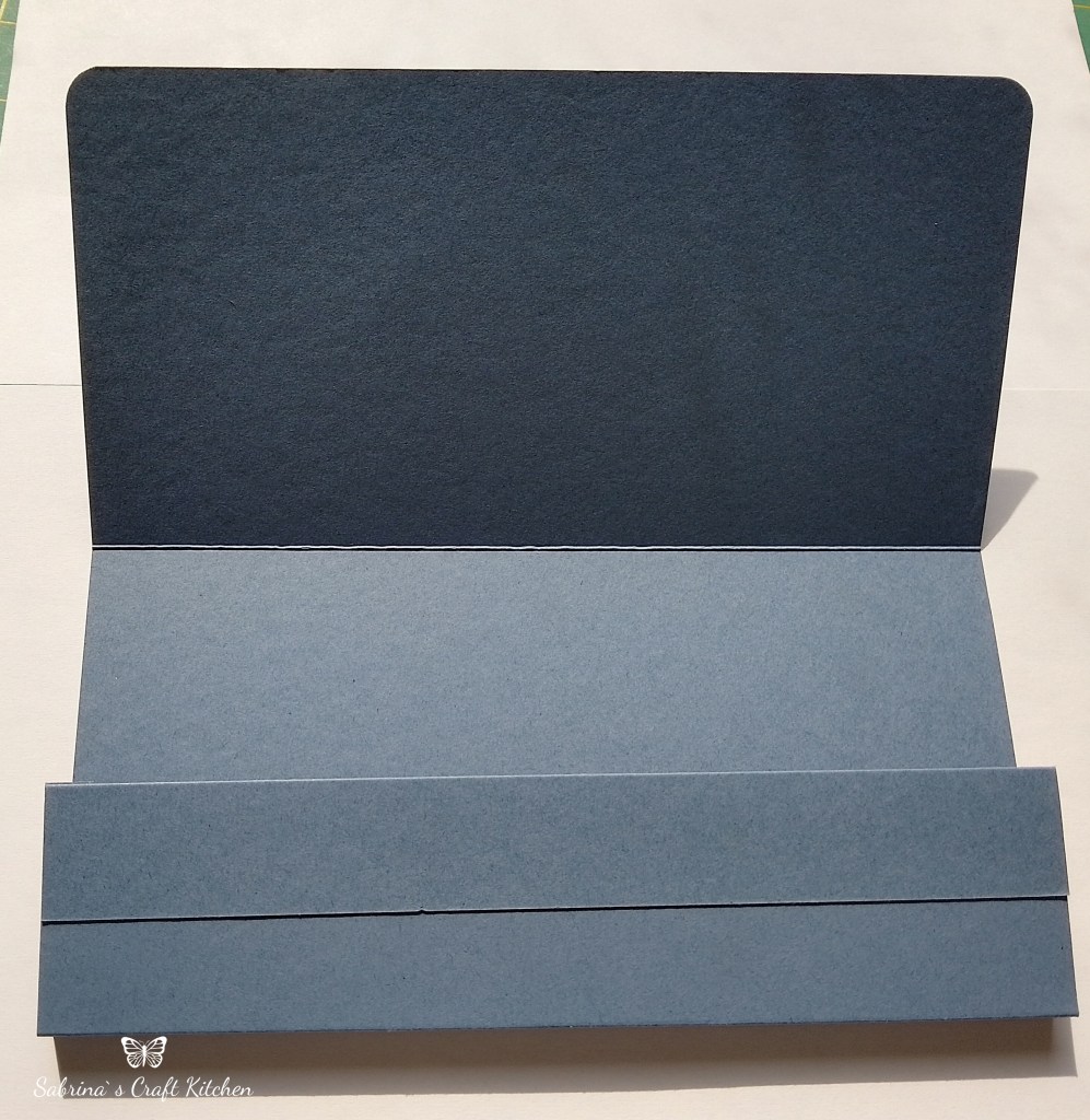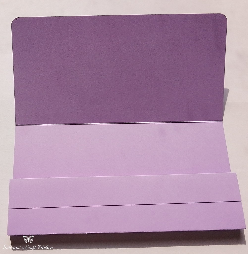 Am nächsten Tag habe ich die Umschläge in Freesien Lila und Abendblau vorbereitet, da die Umschlagkarten aus Din A4 Farbkarton sind brauchte ich sie nur in der Länge falzen und die Stege, die als abstand links und rechts sind in den jeweiligen Farben zu zuschneiden, falzen und einzukleben.