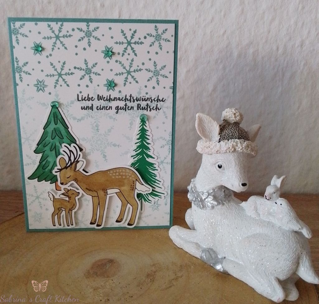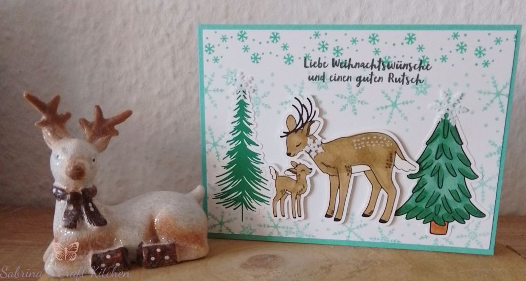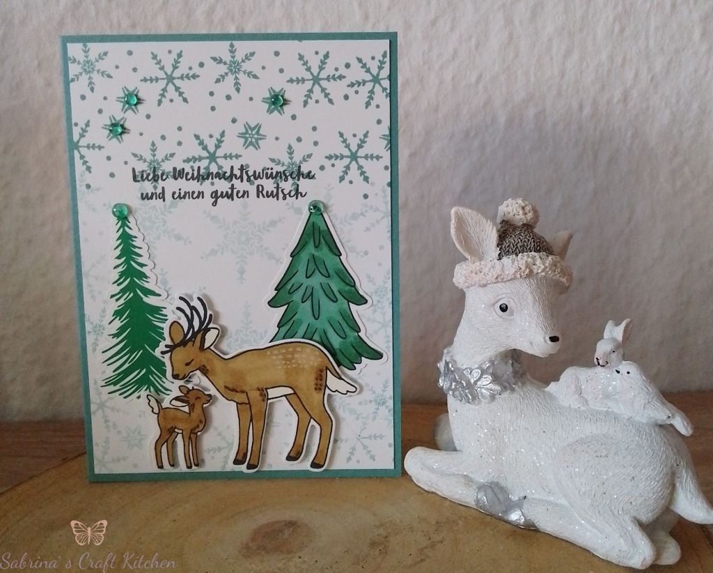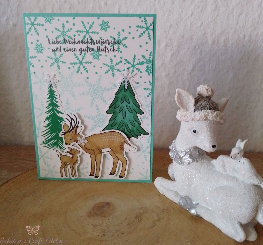 Gewünscht waren Rentiere mit Bäumen und Schneeflocken, die Karten sollten verschiedene Farben haben.